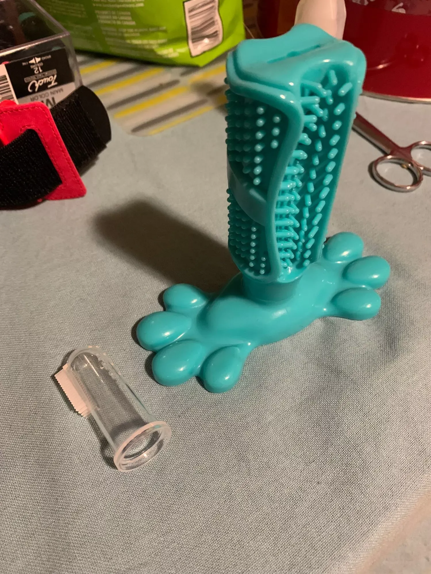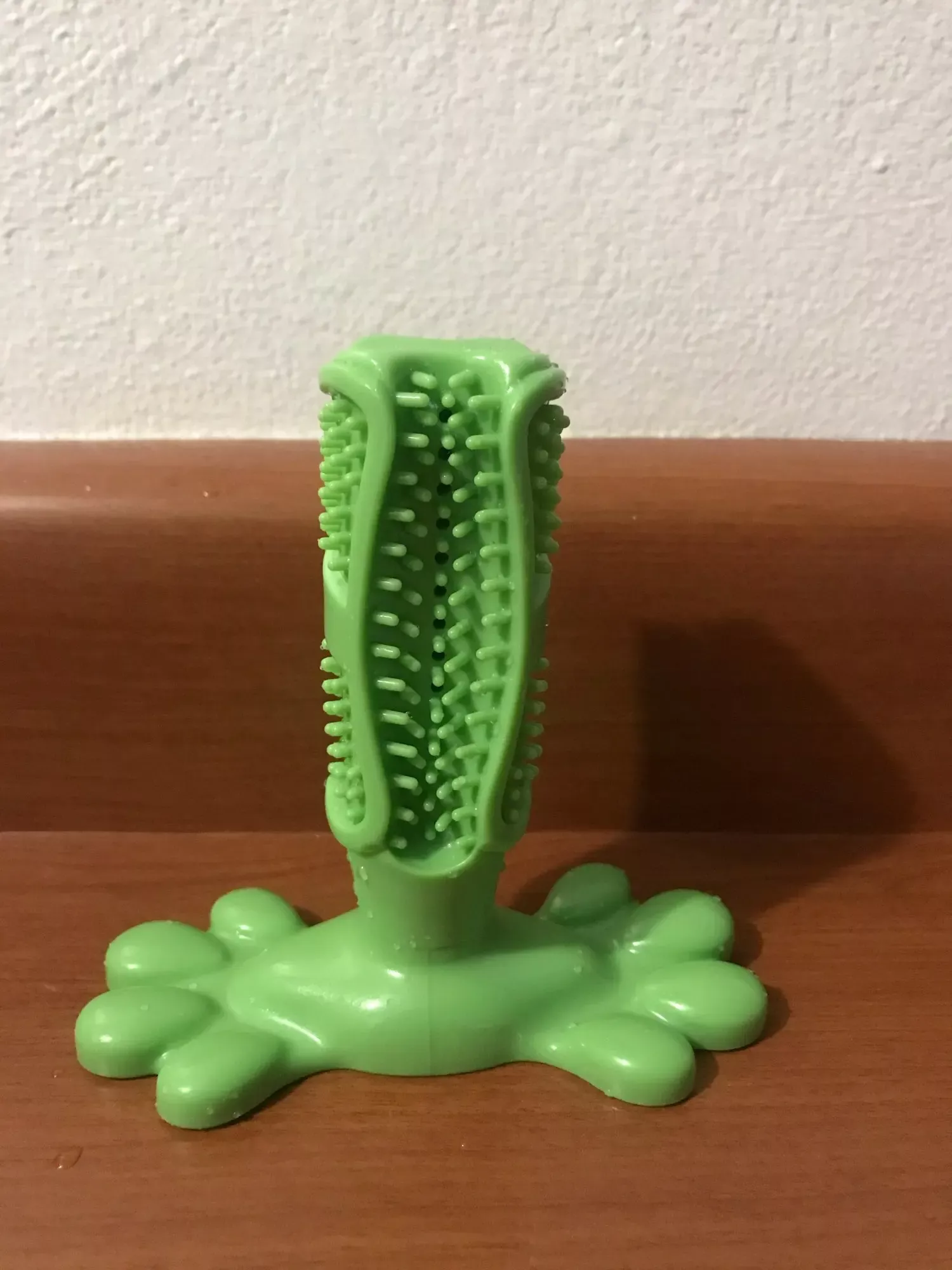 My dog took to this toothbrush right away. It’s durable, non-toxic, and keeps his teeth sparkling clean.