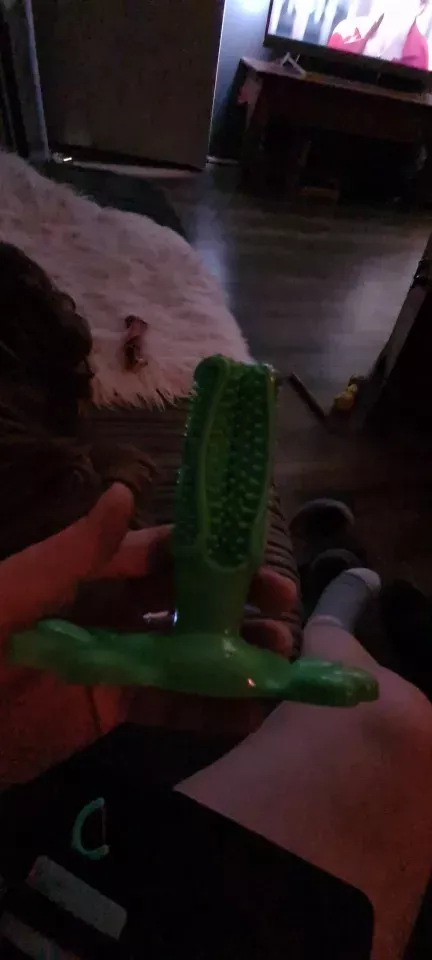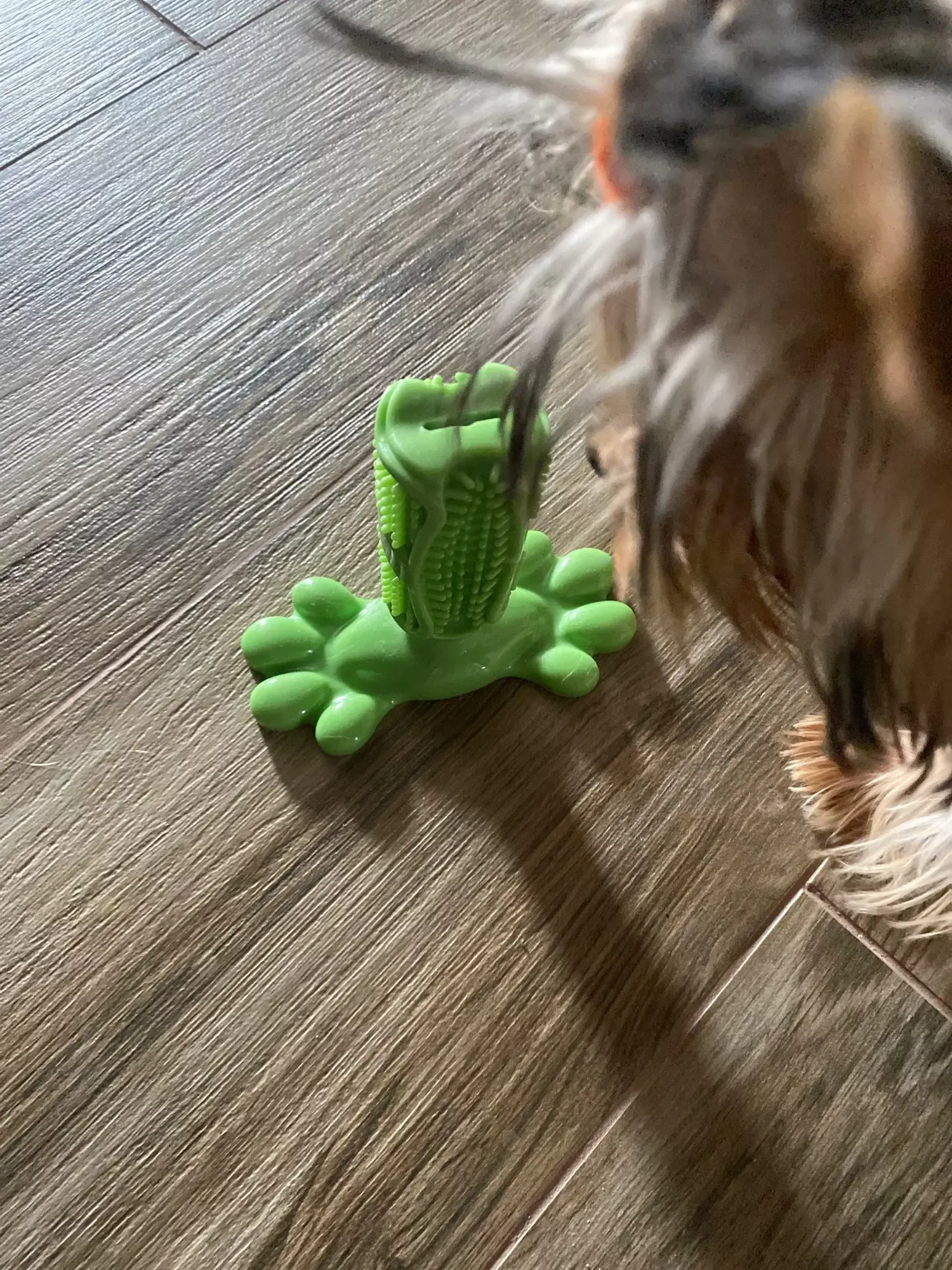 I was initially skeptical about buying another chew toy for my dog, but this toothbrush has been a revelation. Not only does my furry friend absolutely adore chewing on it, but I’ve also noticed a significant improvement in his dental health. His breath is fresher, and those worrisome yellow stains are fading away. It’s incredibly durable too, surviving the enthusiastic gnawing of my energetic pup. A total win for us!