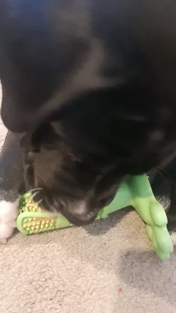 As a pet owner, I’m always on the lookout for products that make life easier for both me and my dog. This toothbrush hit the mark perfectly! It’s amazing to see how it turns teeth cleaning into a fun activity for my dog. He’s always excited to play with it, and I can rest easy knowing his oral hygiene is being taken care of. The design is smart, making it easy for him to hold and chew, ensuring a thorough clean every time.